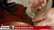 Saçını kemana taktı