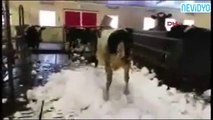 Kar gören inekler çılgına döndü