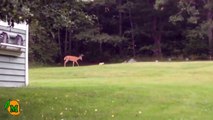 French Bulldog Plays with Deer