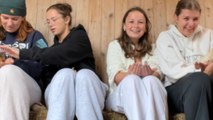 Chicken steals spotlight at farm shop while friends recover from hangover.