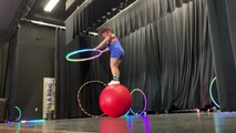 Woman Performs Scary Trick With Ball and Hoop on Stage