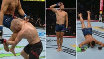 Il a commencé par une roue puis a voulu faire un flip en arrière mais au lieux de retomber sur ses pieds, il est retombé sur sa tete.
