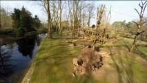 Un drone survole un zoo pour pouvoir filmer les animaux de près, mais quand il survole l'enclos des chimpanzés, un singe situé en haut d'un arbre montre son mécontentement.