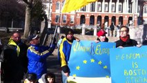 In Boston Ukrainians sign the national anthem of Ukraine on Nov 24, 2013