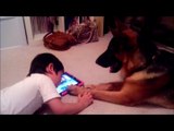 German Shepherd Puppy Dog learning how to play iPad