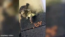 Cute Food Fight Between Two Turtles