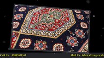 It has strong red colours, with a tasseled edge.