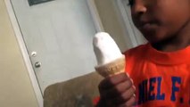 Funny dog eating a ice cream