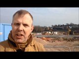 Crowd watches firefighters in action after fire destroyed a building in Kingsbury