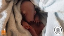 Baby wombat wiggles paws in deep sleep