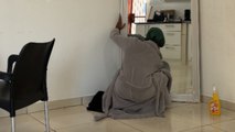 Mirror shatters after the girl places it imperfectly in the corner of home