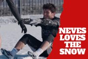 PSG João Neves makes snow angels in a covered field
