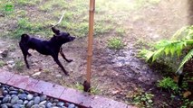 German Shepherd Loves Playing With Sprinklers