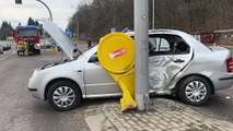 Zderzenie VW ze skodą w Przemyślu. Jedno z aut uderzyło w latarnię