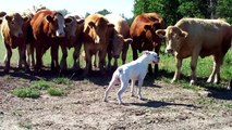 Dog and Herd Of Cows Meeting at Firs Time - AMAZING Animals