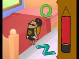 Gatot Kata mencari benda yang diawali dengan huruf G dan mengajarkan cara menulis huruf G.