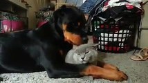 Rottweiler loves the cat so much - Super Funny Video