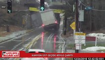 Kamyon üst geçide böyle çarptı
