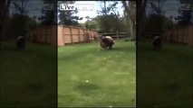 bear attacks deer in family backyard