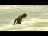 Fisherman taking a bath in the sea water