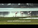 Greater Flamingos gather at the Thol Lake. Thol Sanctuary, about an hour's drive from Ahmedabad, attracts flocks of flamingos, pelicans, kingfishers, ibis, and leggy storks.