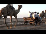 Tourists enjoy taking a camel ride on the way to Patan palace in Rajasthan, India.