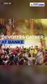 Good slow motion stock footage of holi celebration at the Banke Bihari temple in Vrindavan, Uttar Pradesh where thousands of devotees and tourist gather.The Priest throws colours on the devotees.