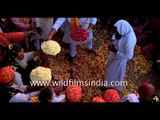 A long forgotten tradition of playing Holi with flowers, brought alive at Keshi ghat, Vrindavan. People threw petals of marigold, jasmine and chrysanthemums on each other.