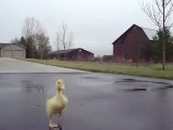 Vegeta est un caneton âgé de 4 semaines qui a été récupéré et sauvé après que sa mère soit morte. C'est un certain Ethan Humes qui a récupéré et qui s'occupe de ce jeune canard orphelin. L'homme est sorti faire une promenade avec le caneton tenu en laisse. Il est amusant de voir comment se dandine le petit Vegeta.
