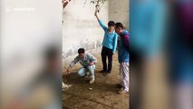 Giraffe gets pedicure at Chinese zoo