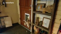 Goat tries and fails to get through dog flap
