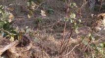 Un léopard affronte un python impressionnant sous les yeux de ses petits