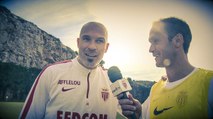 Séquence inside avec Ricardo Carvalho et Andrea Raggi. Micro en main, le défenseur portugais félicite son complice pour ses 100 matches avec l'AS Monaco. Ambiance !.