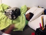 Dog don't want a boy to leave bed