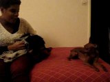 Mi perrito pincher monta a mi perra pastora y os lo enseño