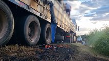 CAMINHÃO DE CACHAÇA PEGA FOGO NA BR 101 EM SANTA RITA