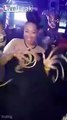 Elle se fait mordre sa fausse poitrine par un serpent... Il aime pas les faux seins
