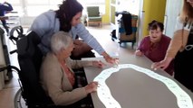 Démonstration de la "table magique" à l'EHPAD d'Evron en Mayenne. Jeu de stimulation pour des résidents qui souffrent de sérieux troubles cognifits