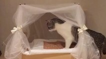 Spoiled cat examines her princess bed
