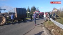 Un groupe d'agriculteurs mécontents déverse du fumier devant l'Intermarché de Pont-l'Abbé (29. Les images de Morgane Le Cam. Plus d'infos sur www.letelegramme.fr