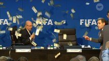 Protester Throws Money At Embattled FIFA President