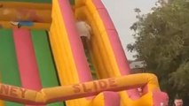 Sloshed fun-seeker takes wet bouncy castle plunge and ends up in a tumble