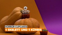 Horror-Cupcakes: ein Skelett und ein Kürbis