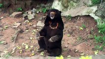 Skeletal sun bears begging for food in Bandung zoo