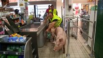 Des agriculteurs font entrer des cochons de force dans un supermarché !