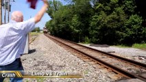 the crash occurred in New Paris, Indiana July 18 2015 no one was injured, The limo was attempting to drive over the crossing but was stuck on the tracks.