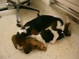 Cuddling with adorable rescued hound puppies