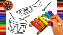How to draw a Violin and Xylophone | Drum, Trumpet | Painting for kids
