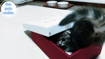 Kitten play with box funny cats