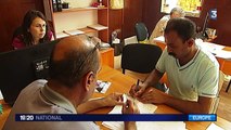 Malgré une vague de chaleur, des toilettes en panne et des heures d'attente en perspective, des centaines de réfugiés patientaient vendredi 7 août devant les bureaux de l'administration sociale de Berlin, débordée par l'afflux de migrants. Durée: 00:42
